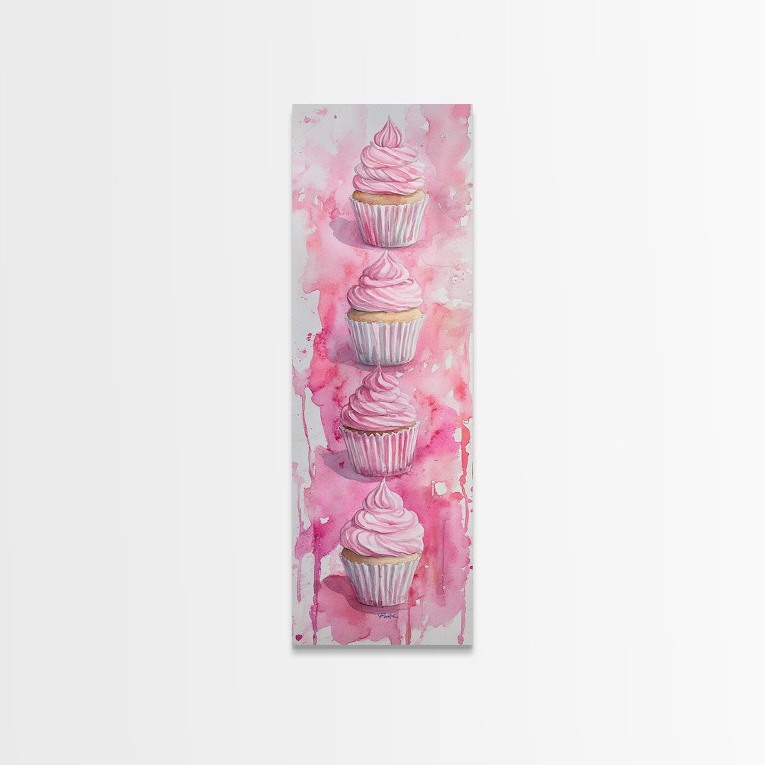 Cupcake Watercolor Canvas Print Food Lover Kitchen Art Light Pink Wall Art Whimsical Vertical Art Cottagecore Room Decor
