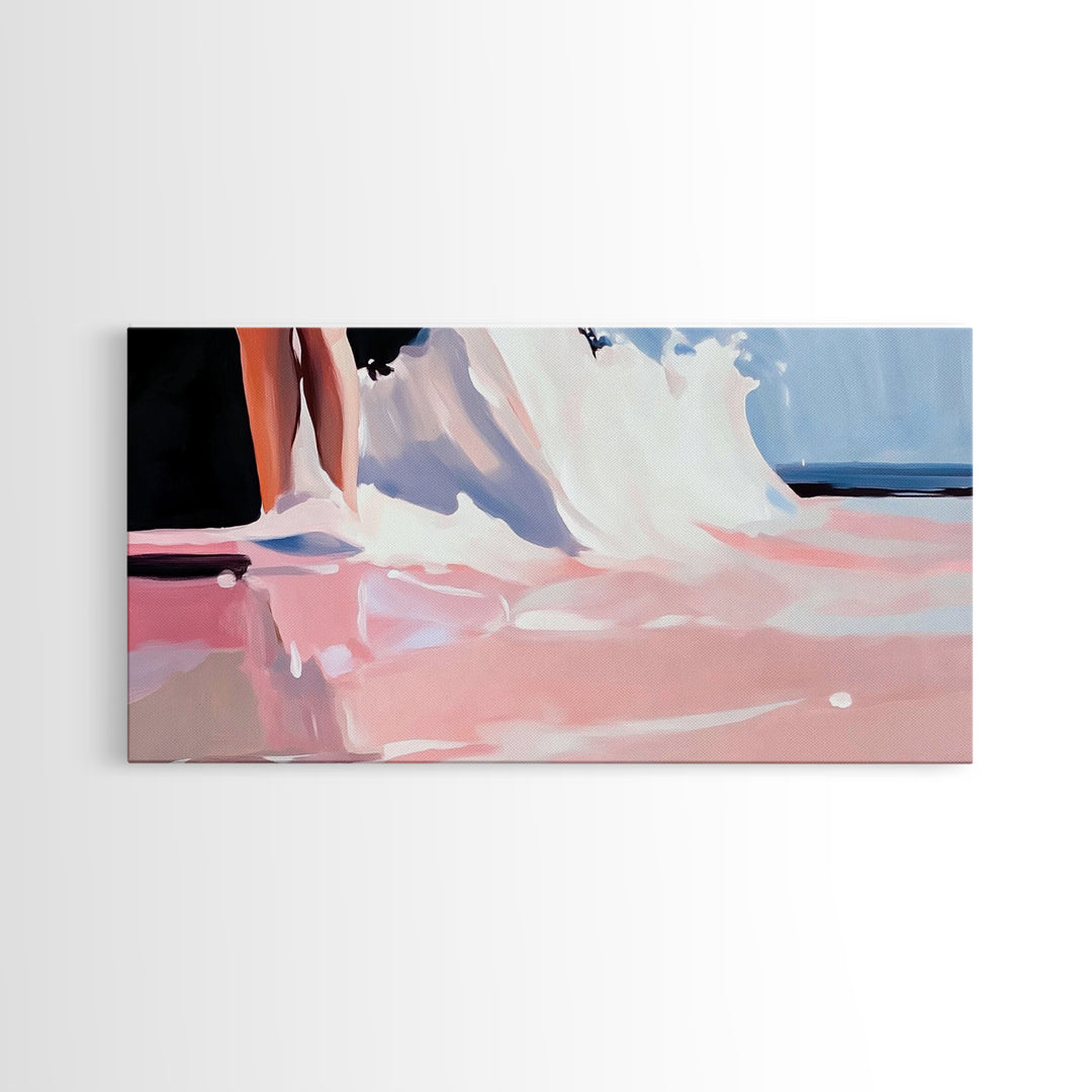 Abstract Waves, Coastal Aesthetic, Beach Sunset, Living Room Wall Art, Canvas Print, Ocean Home Decor, Modern Seaside Artwork, Pink and Blue