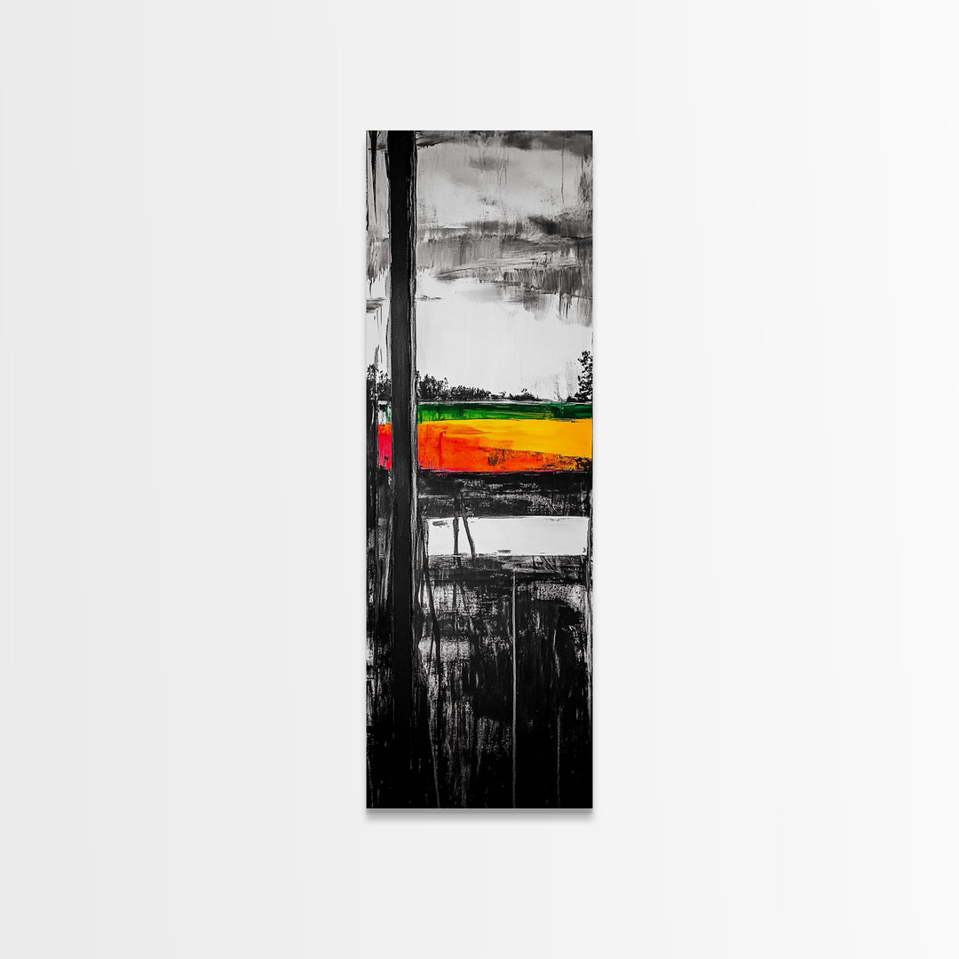Abstract Window View, Landscape Art, Black and White with Color Accent, Modern Home Decor, Office Wall Artwork, Framed Canvas Print