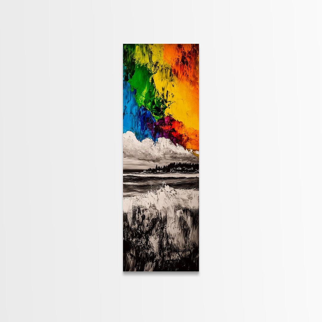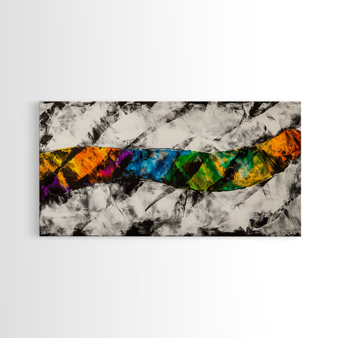 Abstract Wave, Dynamic Ocean Art, Surf Inspired Painting, Black and White Modern Art, Colorful Coastal Decor, Canvas Print, Hallway Art