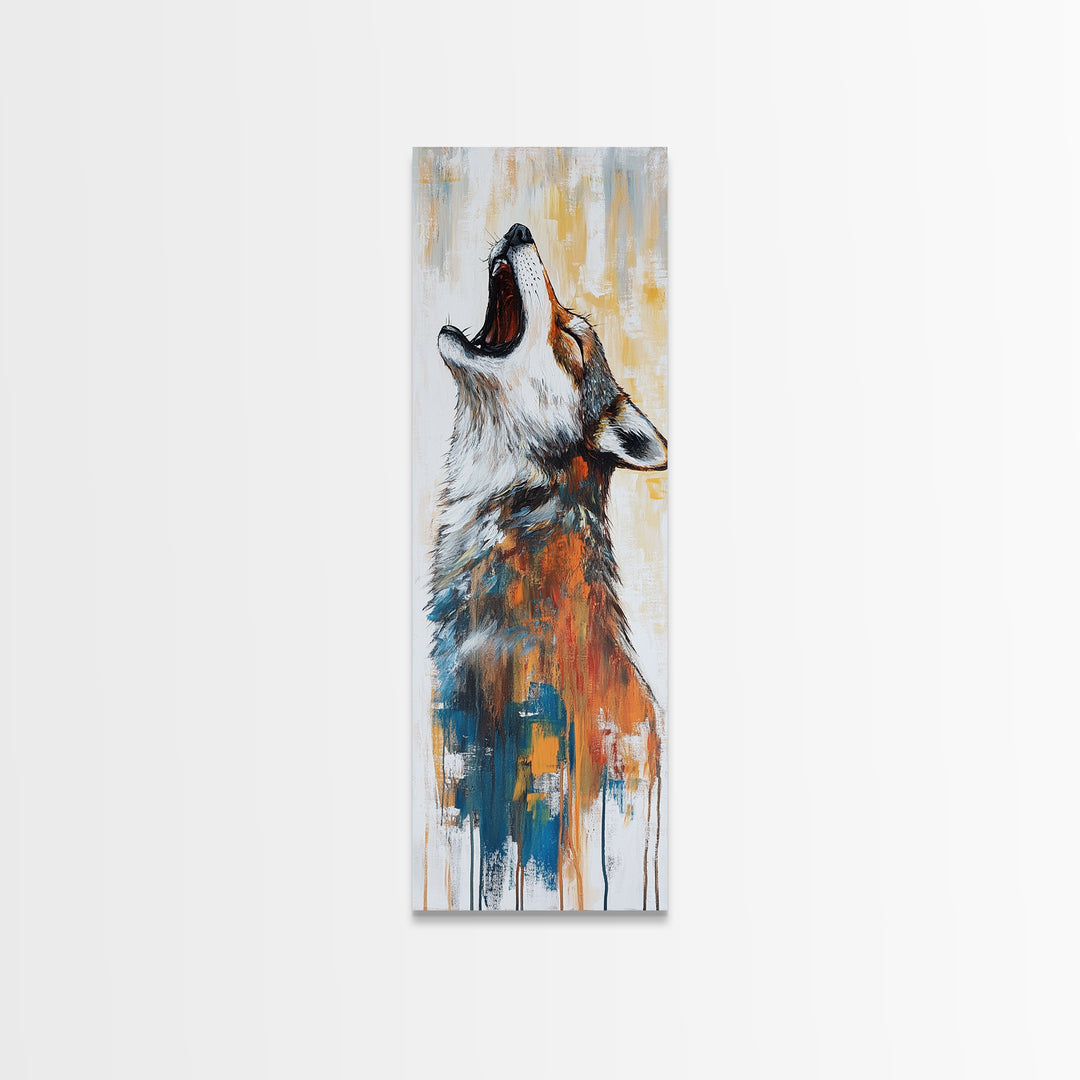 Abstract Wolf Yawning Canvas Print wabi sabi art, tall narrow art, contemporary wall art, modern rustic decor, extra wide art, bold color painting, vertical wall art, wildlife painting, rustic art