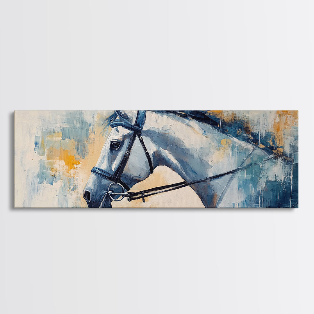 Abstract white horse, impressionist, vintage horse art, cottagecore wall art, blue and green wall art, framed canvas print, rustic decor