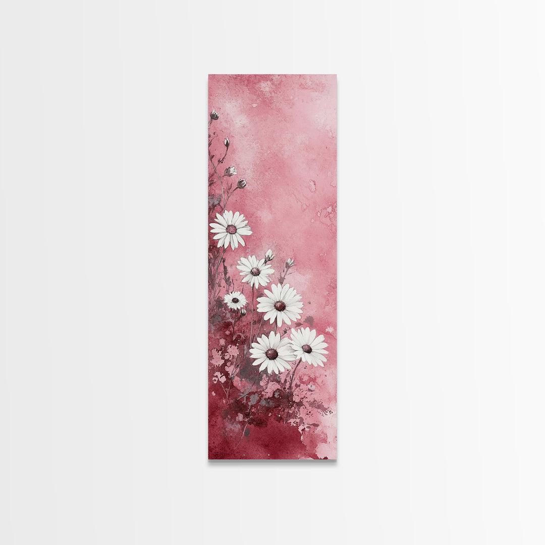 Daisy Wildflower Canvas Print Cottagecore Pink Orange Wall Art Botanical Framed Canvas Rustic Living Room Skinny Floral Spring Art