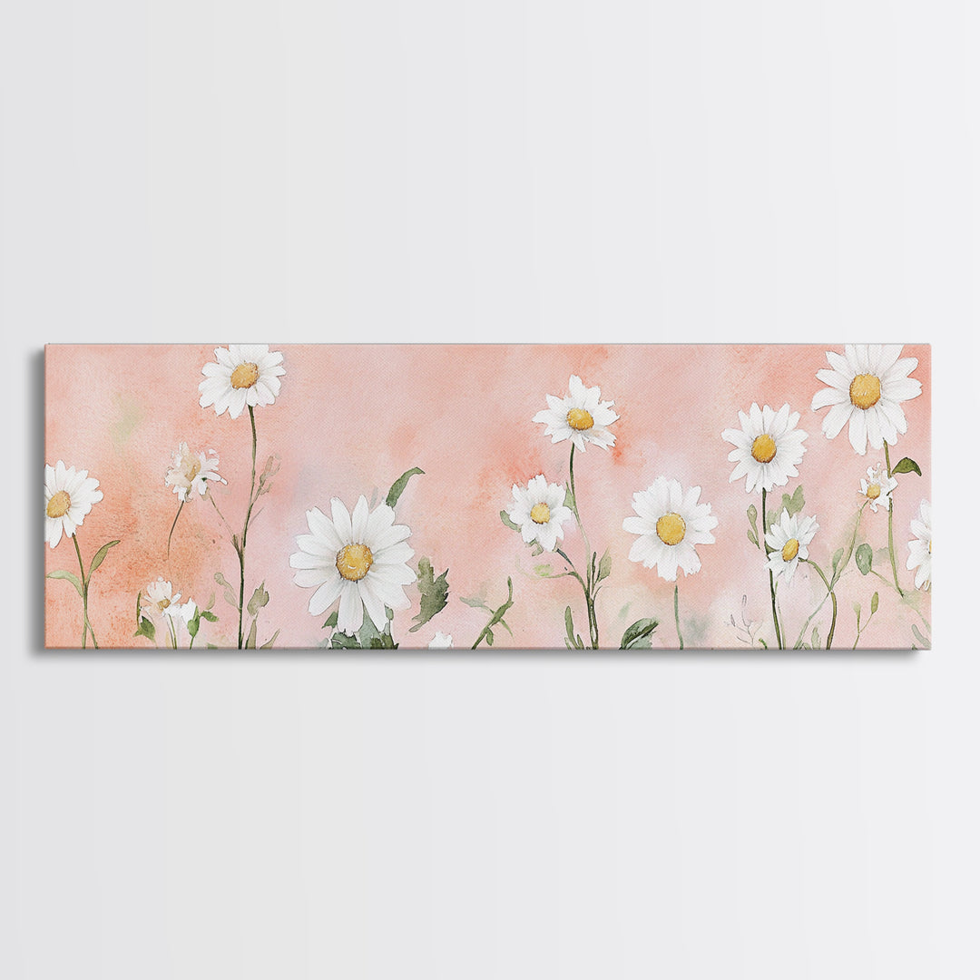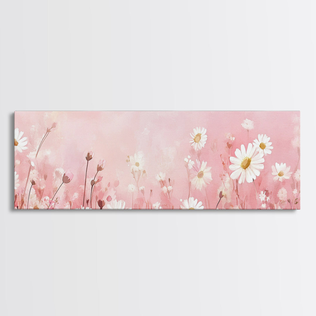 Daisies Canvas Print Wildflower Painting Pink Botanical Prints Cottagecore Wall Art Light Pink Decor Bedroom Art Living Room Art