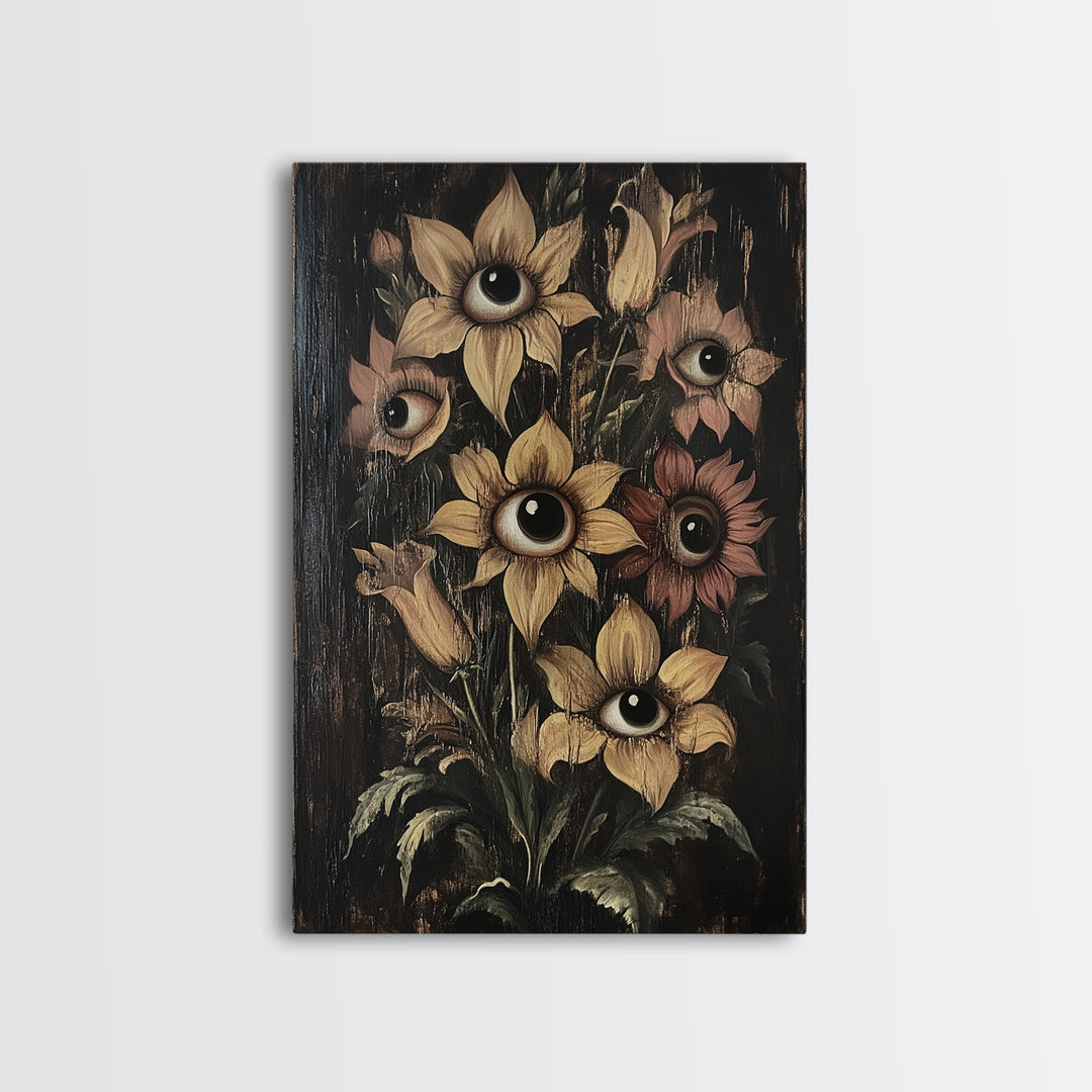 Dark Botanical Gothic Canvas Print Wood Framed Wall Art Witchy Surreal Cottagecore Halloween Wall Art Flowers With Eyes Macabre Art