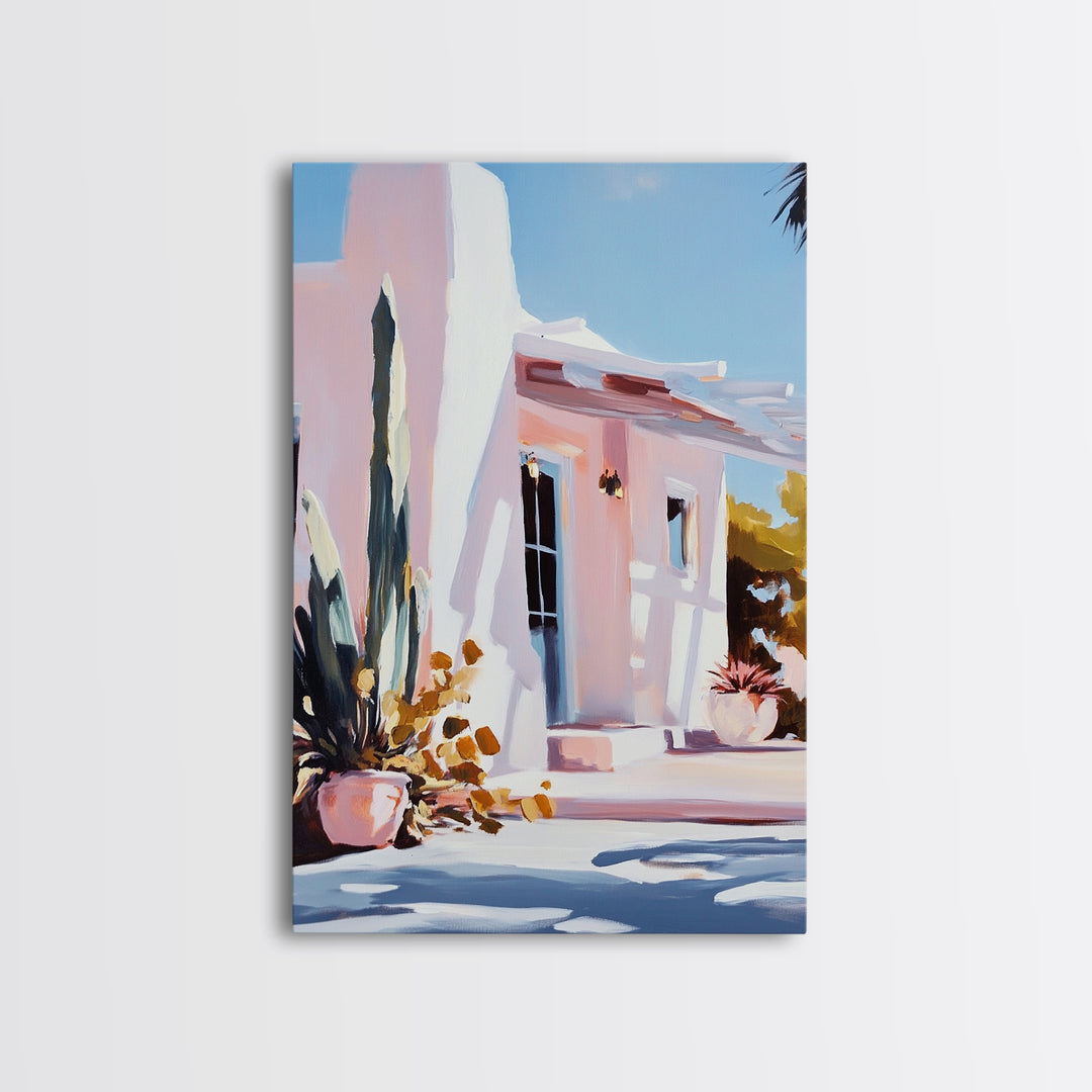 Desert House Art, southwest wall art, rustic decor, boho art, farmhouse art, coastal painting, framed canvas print