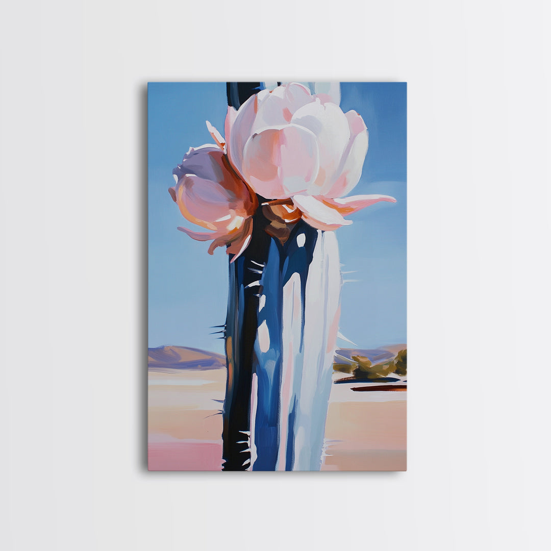 Desert Flowers, Modern Botanical Art, Pastel Succulent Painting, Nature Inspired Wall Decor, Framed Canvas Print, Aesthetic Home Art