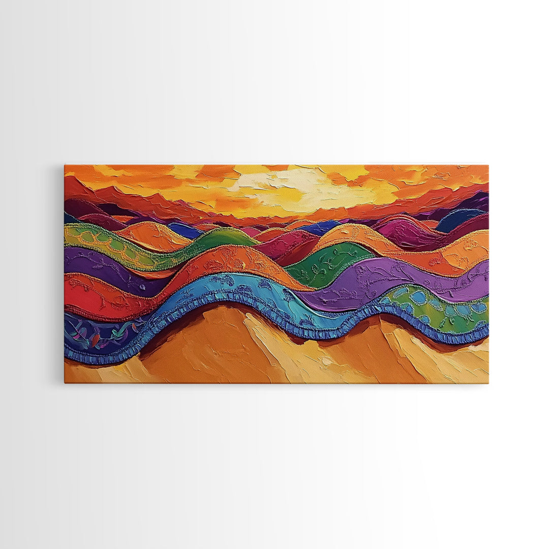 Desert Hills, Color Layers, Sunset Sky, Canvas Print, Boho Abstract Wall Art, Eclectic Bedroom Print, Vibrant Hallway Decor