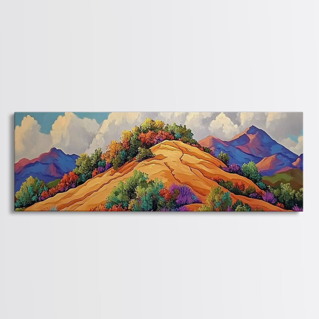 Desert Hill Landscape, Autumn Colors, Southwest Wall Art, Framed Canvas Print, Living Room Decor, Colorful Nature Painting