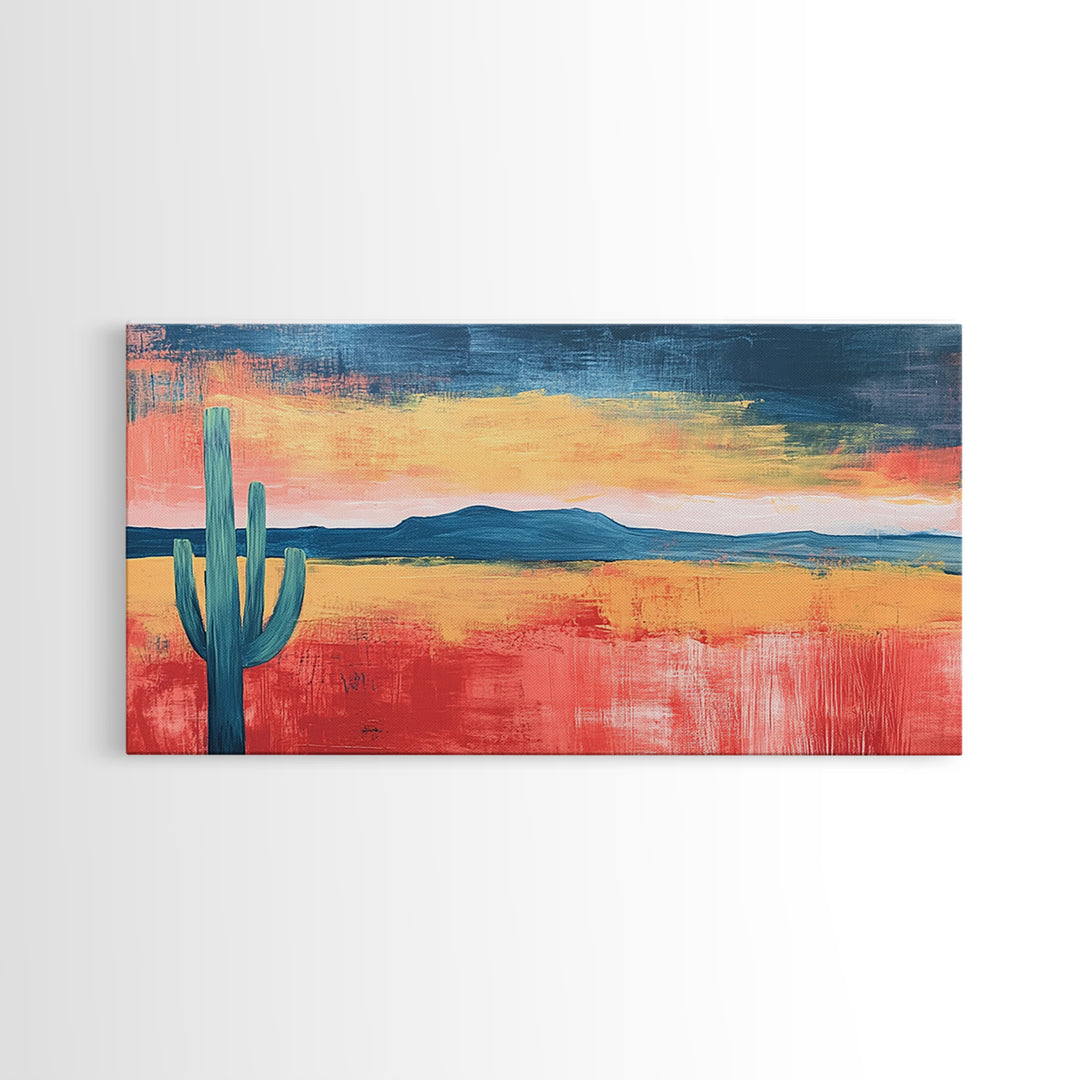 Desert Landscape Art, Joshua tree art, southwest wall art, extra wide art, panoramic painting, framed canvas print, rustic wall art, sunset painting