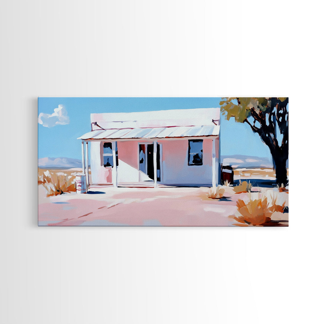 Desert Shack, Vintage, Sunny, Framed Canvas Print, Boho Home Decor, Rustic Wall Art, Southwestern Art, Cozy Farmhouse Style, Fall Vibes