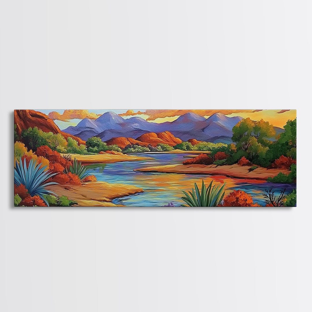 Desert River, Southwest Landscape, Canvas Print, Boho Wall Art, Nature Painting, Earthy Home Decor, Western Art, Office Wall Art