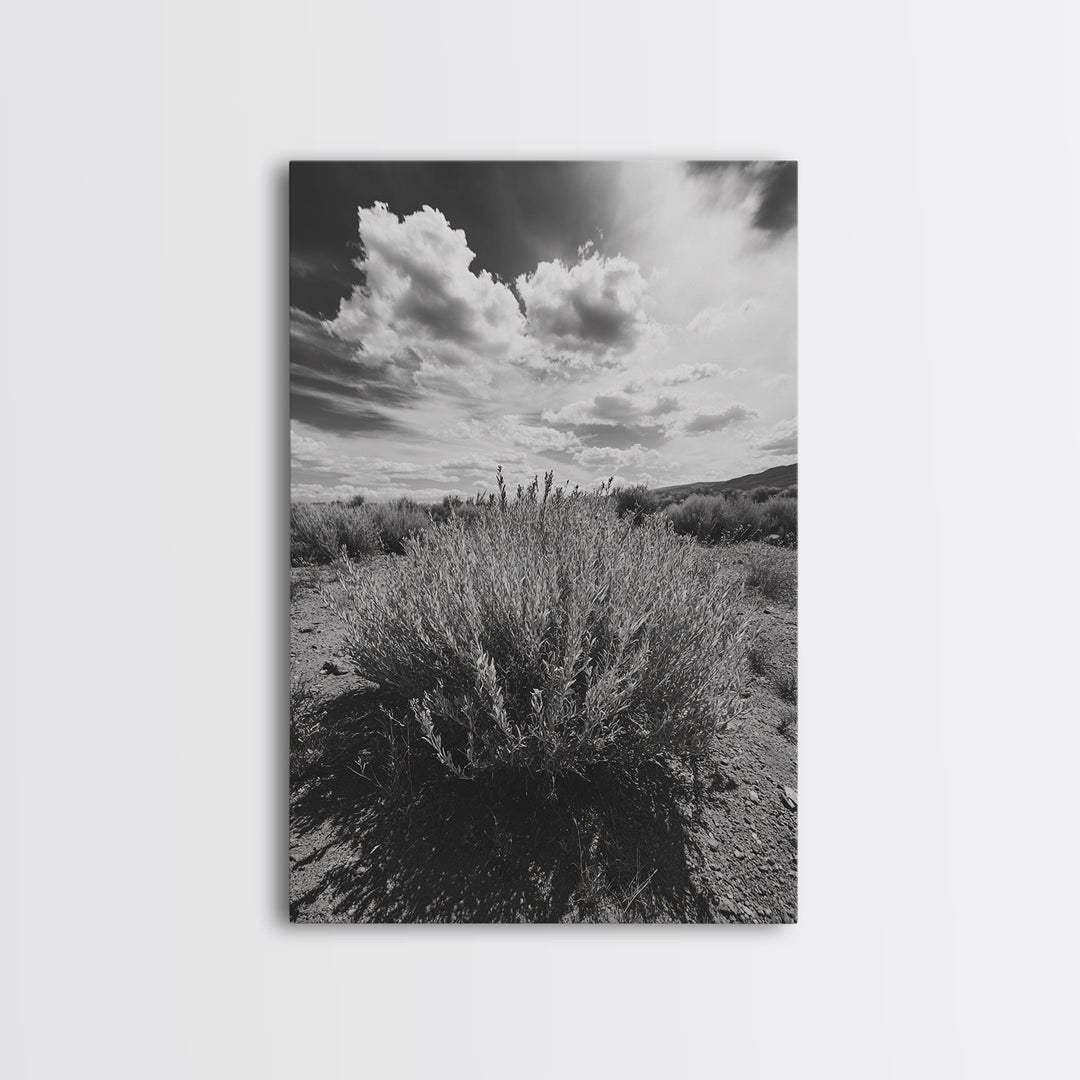 Desert Sage, Cloud Sky, Nature Wall Decor, Framed Canvas Print, Minimalist Art, Boho Style, Neutral Tones, Entryway Botanical Print