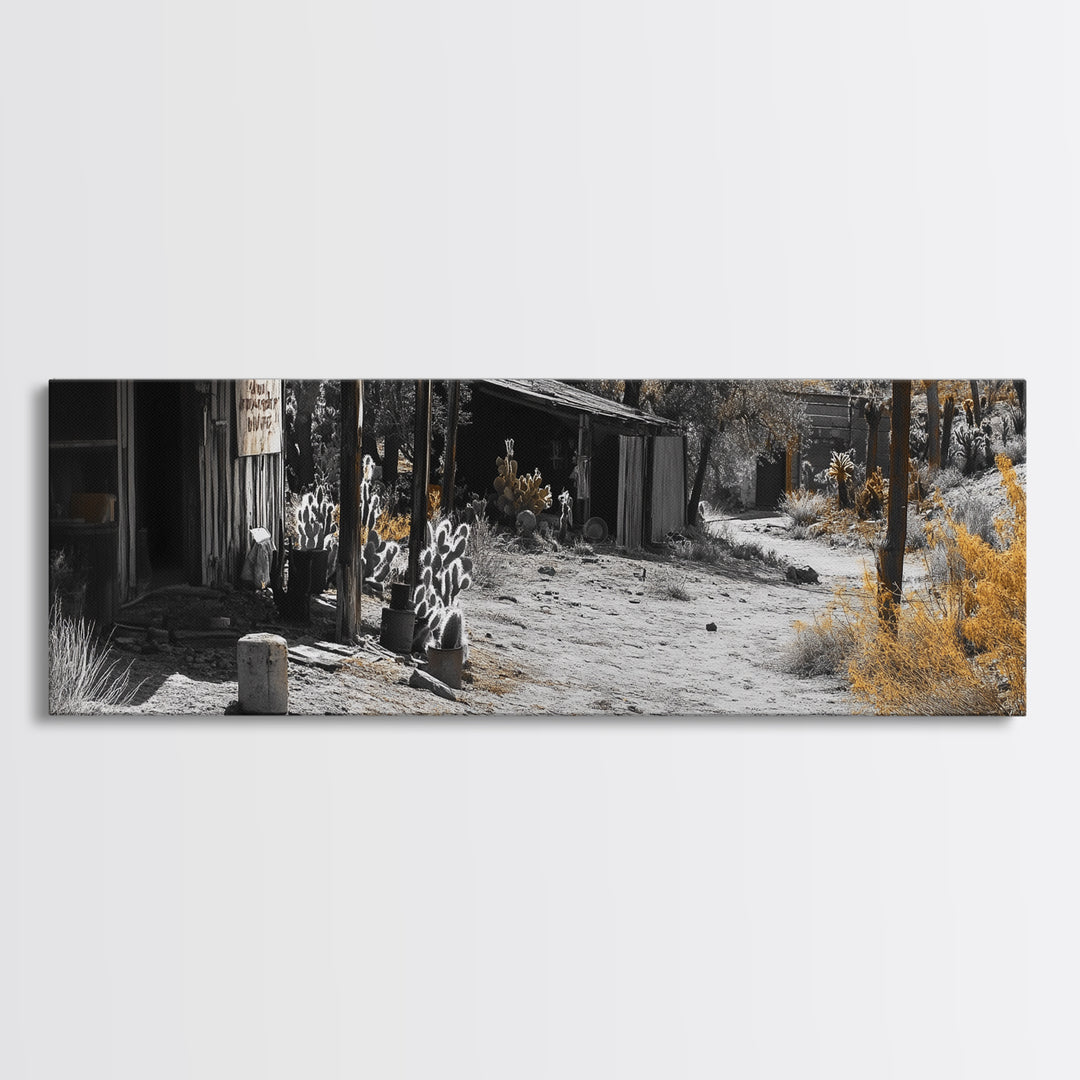 Desert Shack, Cactus Garden, Western Scene, Vintage Cabin, Framed Canvas Print, Rustic Wall Art, Southwest Decor, Boho Living Room Art