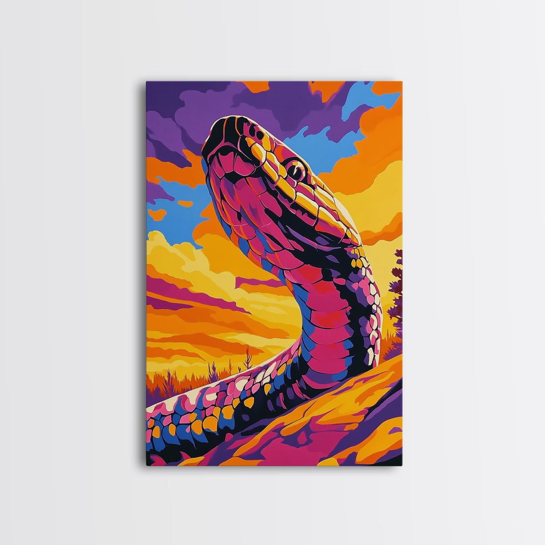 Desert Serpent, Colorful Snake Art, Southwest Wall Art, Boho Home Decor, Wildlife Painting, Framed Canvas Print, Rustic Art