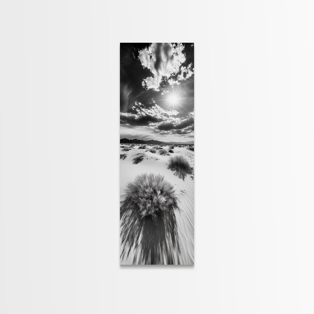 Desert Sun Shadows, Dune Landscape Art, Black White Wilderness, Framed Canvas Print, Boho Office Wall Art, Southwestern Minimal Style