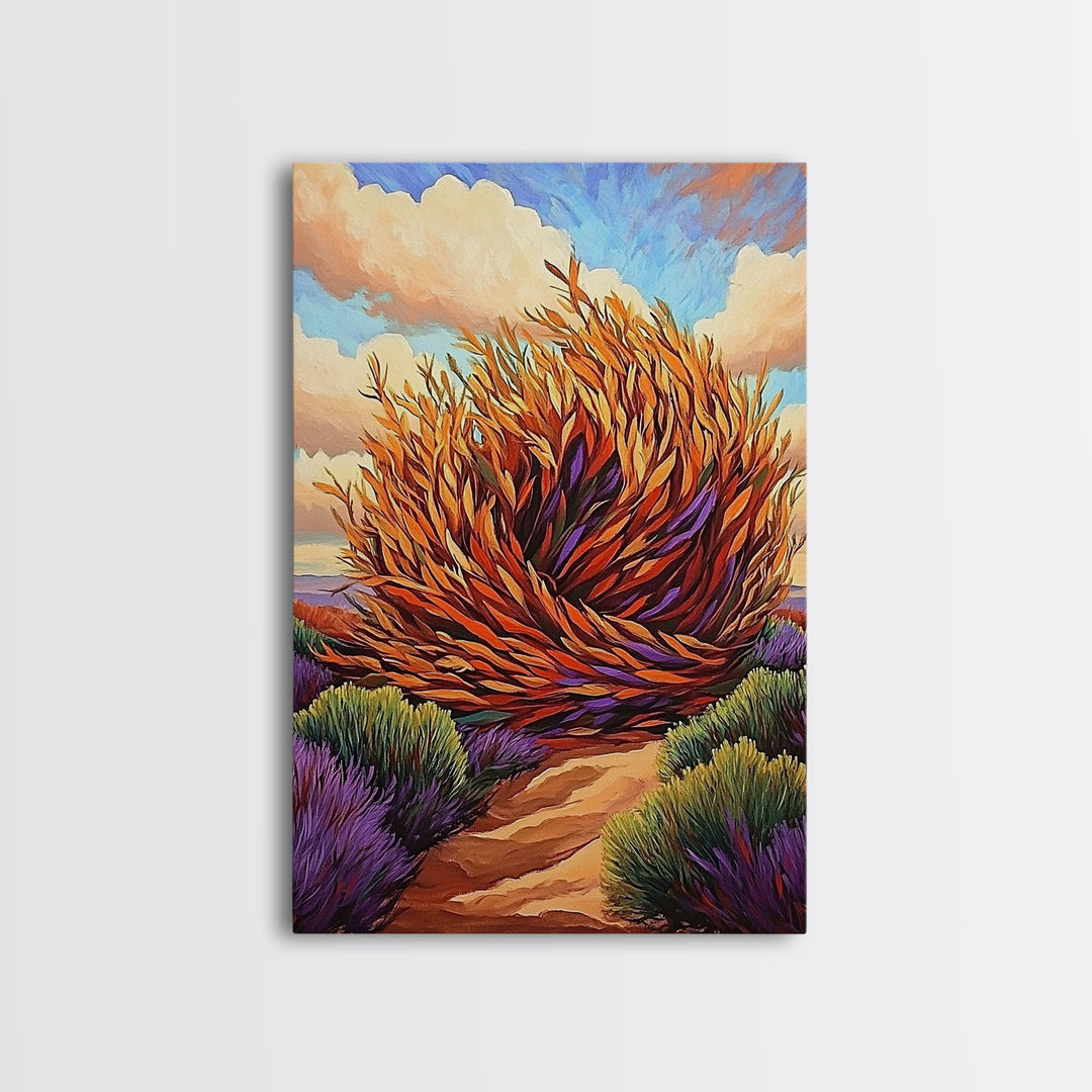 Desert Winds, Autumn Tumbleweed, Nature Path, Wild Colors, Framed Canvas Print, Entryway Wall Art, Fall Rustic Decor, Southwest Art