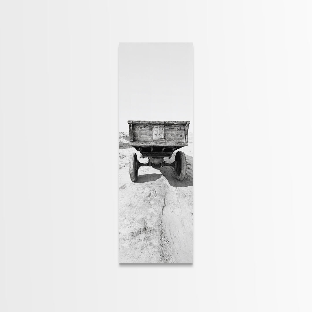 Desert Wagon, Abandoned Cart, Rustic Sandscape, Framed Canvas Print, Farmhouse Wall Art, Neutral Tones, Vintage Desert Scene, Fall Style