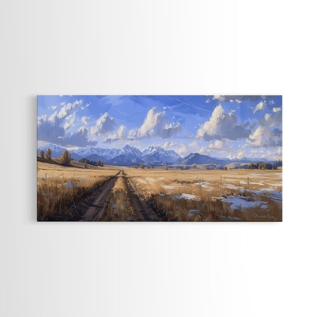 Dirt Roads of Wyoming Framed Canvas Print, Oil Painting Print, Panoramic Extra Wide Large Format Living Room Wall Decor