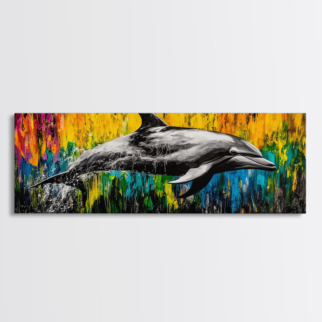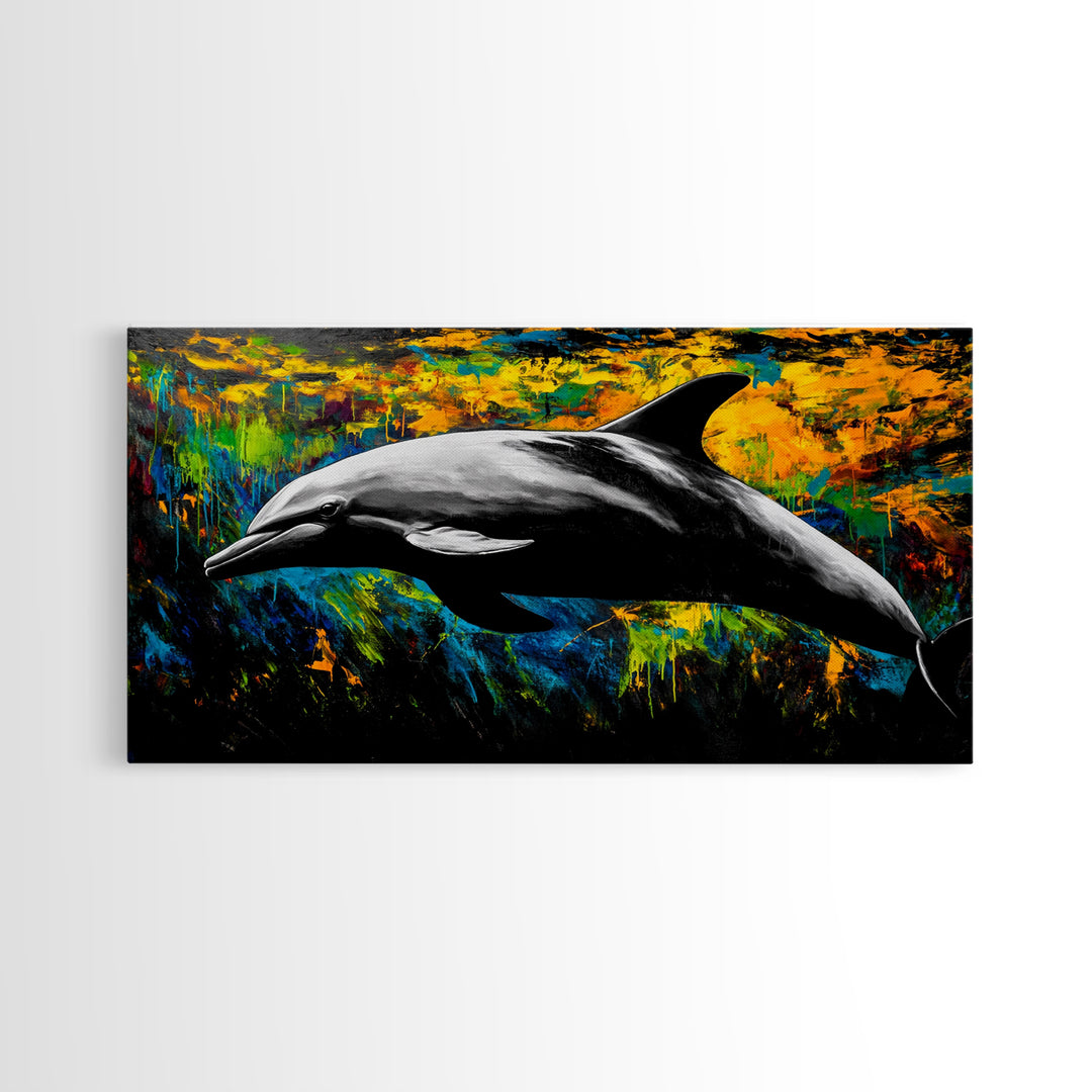 Dolphin, Ocean, Vibrant, Abstract, Framed Canvas Print, Colorful Sea Life Wall Art, Coastal Decor, Beach House Art, Nautical Theme