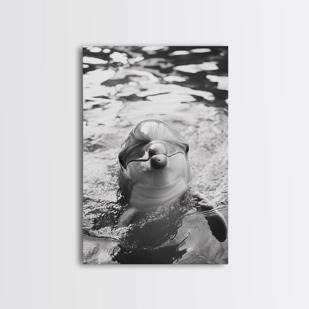 Dolphin Splash, Ocean Encounter, Monochrome Wildlife, Canvas Print, Coastal Wall Art, Bathroom Decor, Marine Animal Photography