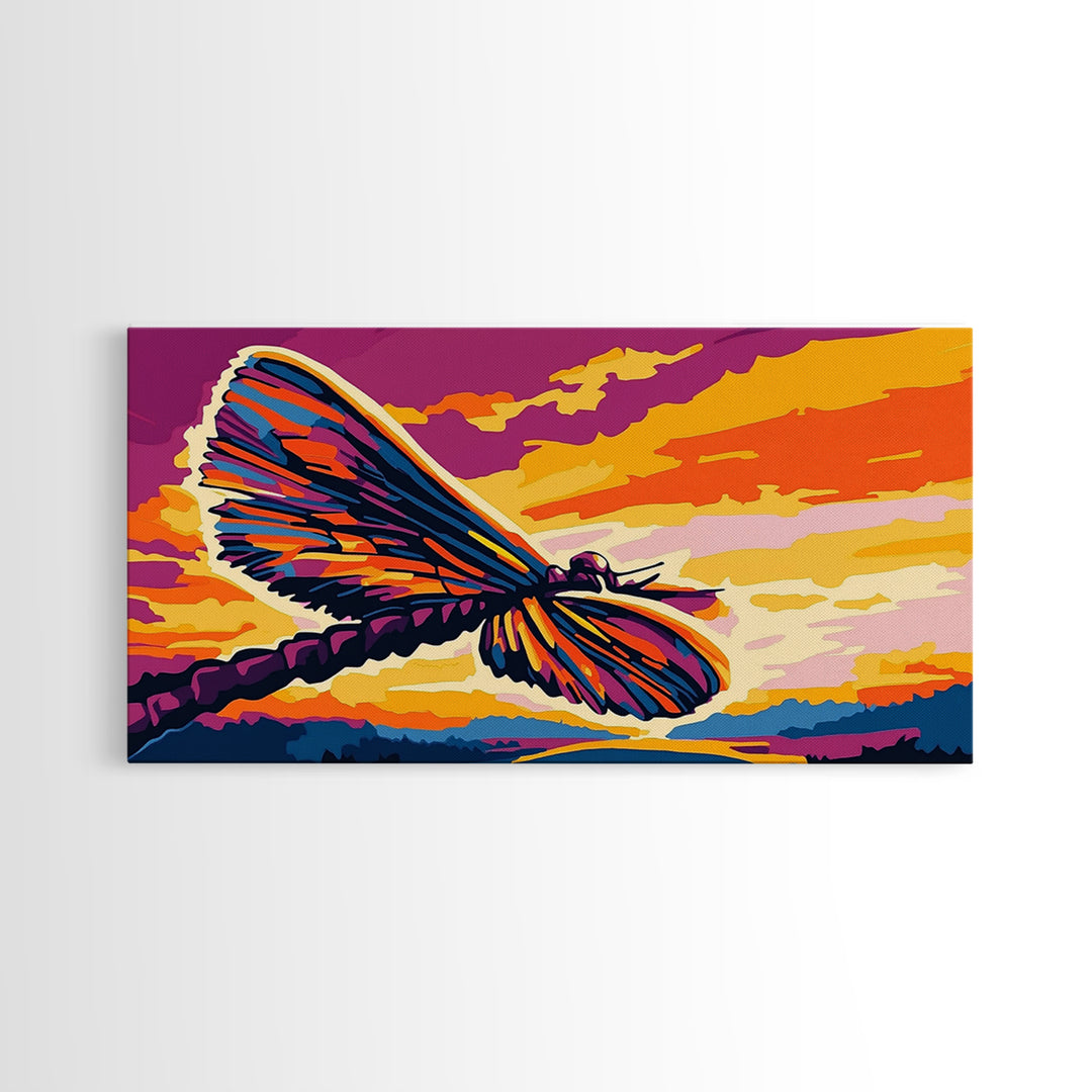 Dragonfly Wings, Garden Sunset, Whimsical insect decor Canvas Print, vibrant boho nature wall art, entryway statement piece