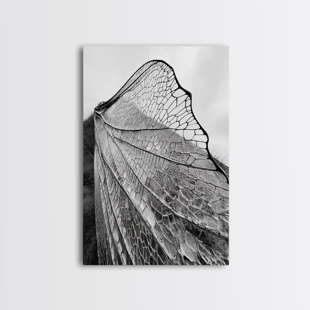 Dragonfly Wings Macro, Nature Insect Print, Detailed Bug Art, Minimalist Scientific Wall Decor, Framed Canvas Print, Study Room Art