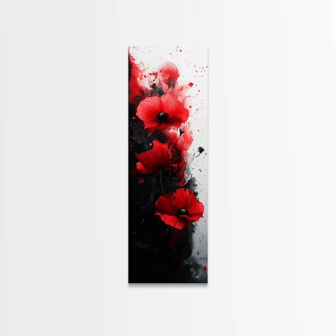 Dramatic Poppy Art Black and White Red Wall Art Framed Canvas Print California Poppy Art Rustic Home Decor Tall Skinny Art