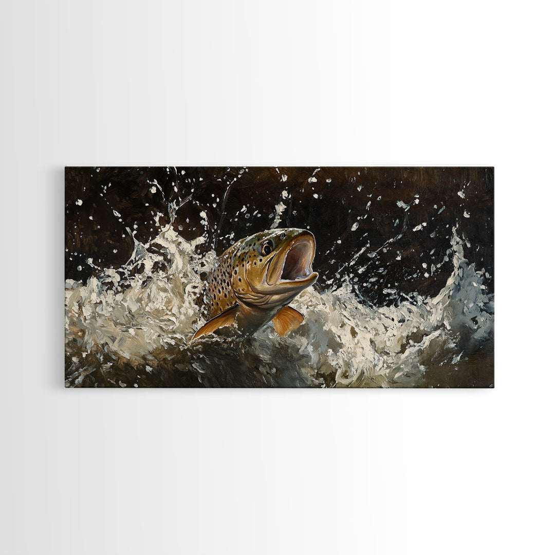 Dramatic Rustic Trout Art Canvas Print, Wild Trout River Scene Wall Decor, Cottagecore Living Room Art, Unique Gift Idea Him Her