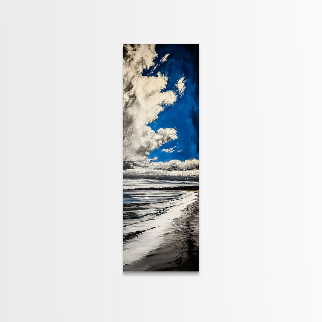 Dramatic Sky, Ocean Shore, Coastal Art, Blue Hues, Framed Canvas Print, Seascape Wall Art, Nautical Home Decor, Living Room Statement Art