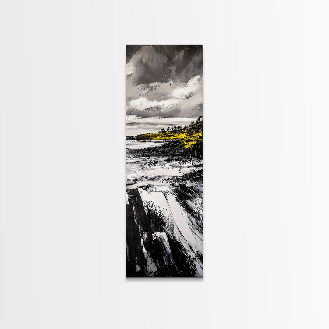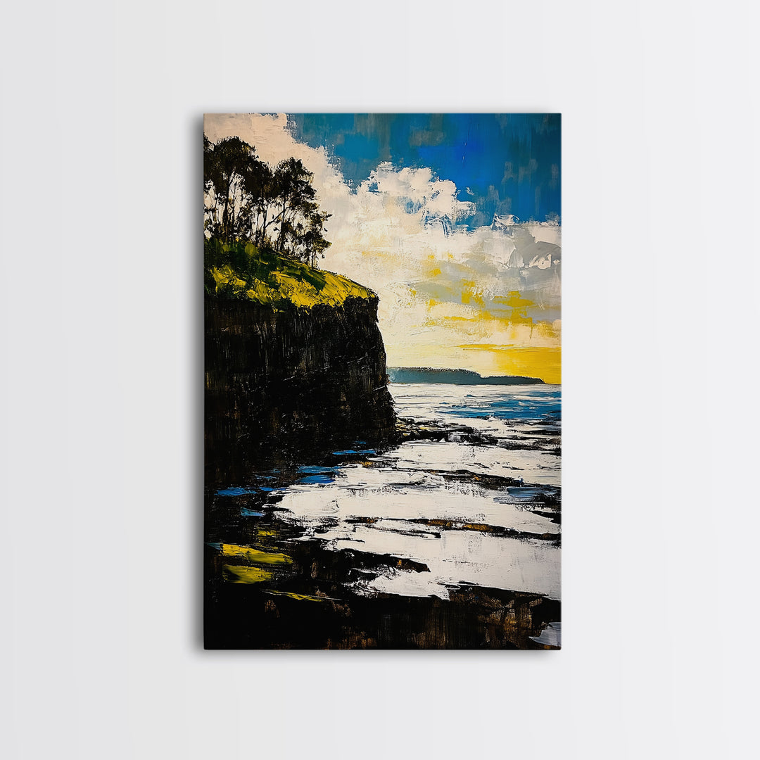 Dramatic Seascape, Cliffside View, Blue and Yellow Art, Canvas Print, Coastal Wall Decor, Beach House Artwork, Contemporary Style