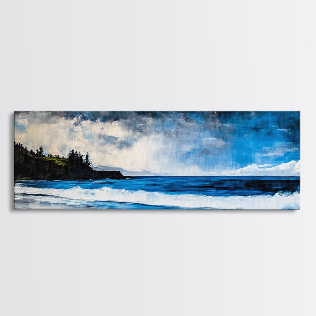 Dramatic Ocean, Seascape Painting, Beach House Decor, Canvas Print, Coastal Wall Art, Bedroom Wall Decor, Blue Wave Art, Nautical Theme