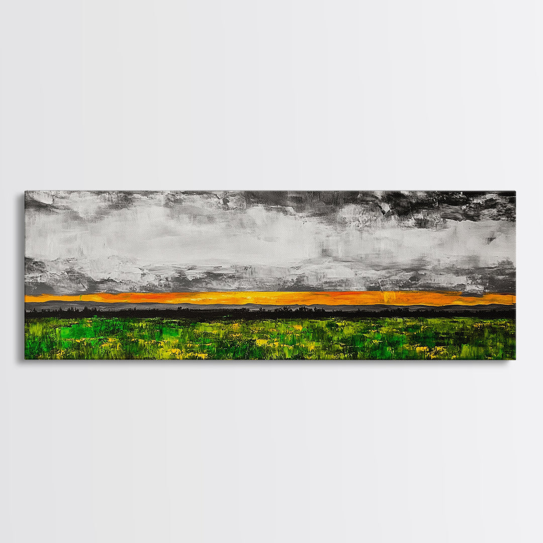 Dramatic Sky, Stormy Landscape, Sunset Over Fields, Modern Nature Art, Framed Canvas Print, Living Room Decor, Abstract Art, Moody Wall Art
