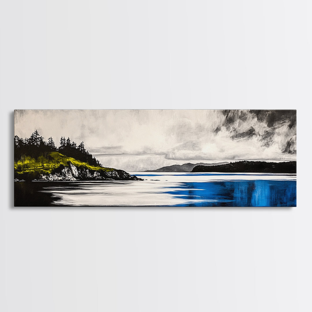 Dramatic Seascape Art, Black and White Ocean Painting, Moody Landscape Print, Nautical Wall Decor, Modern Home Art, Framed Canvas Print
