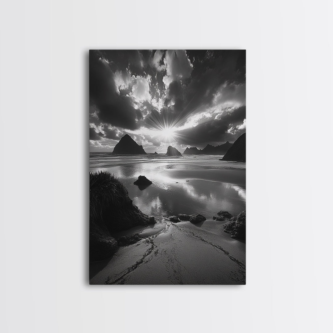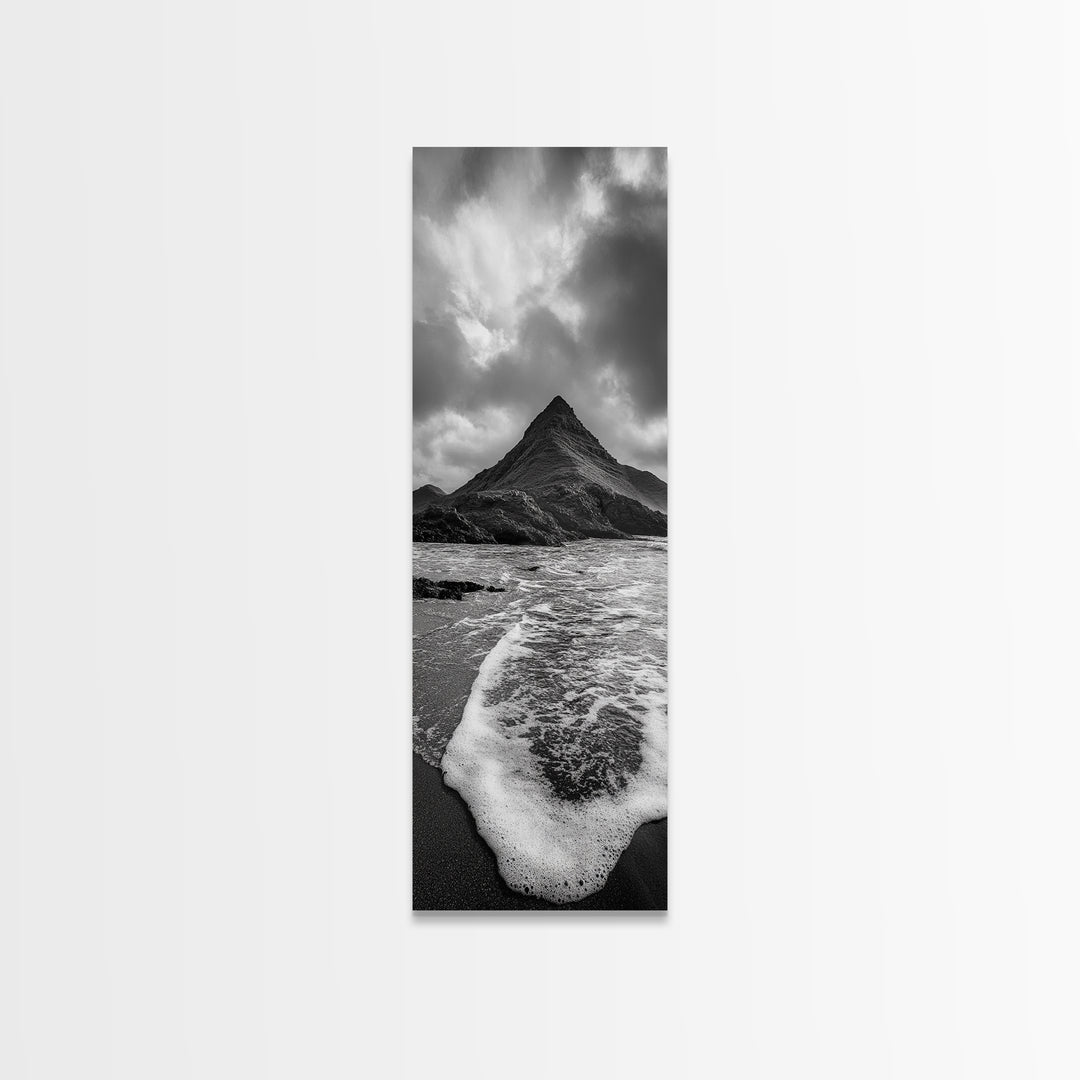 Dramatic Seaside Peak, Coastal Mountain Wall Art, Black Beach Photography, Bold Nature Decor, Canvas Print, Living Room Art
