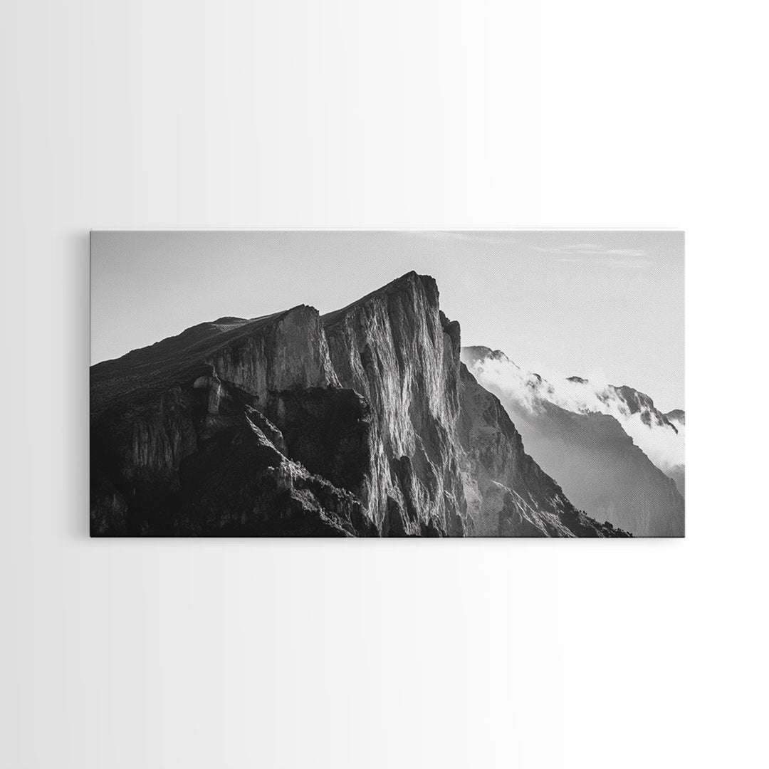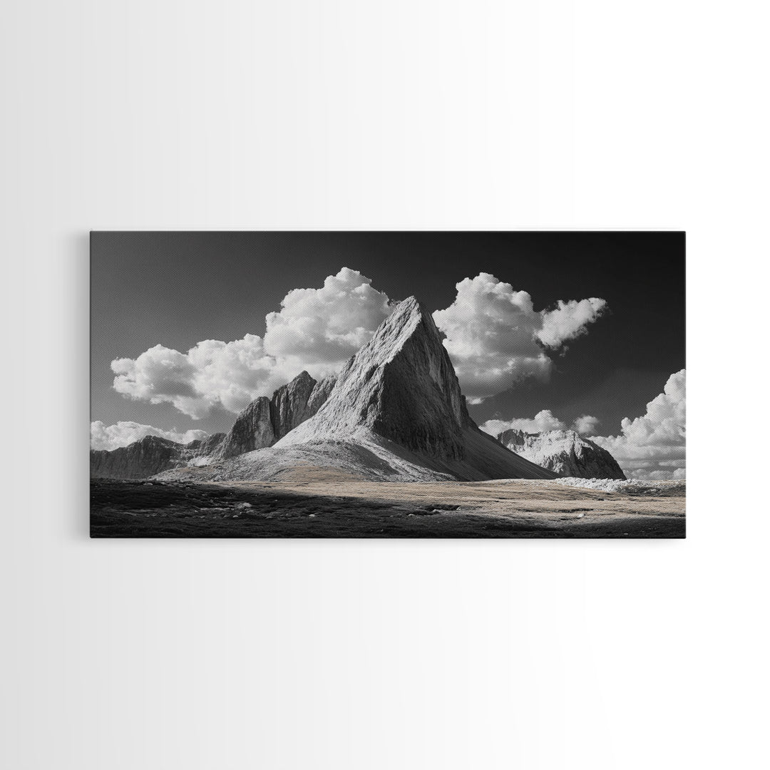 Dramatic Peak, Cloudy Sky, Monochrome Nature, Canvas Print, Minimalist Mountain Wall Art, Office Decor, Black White Landscape