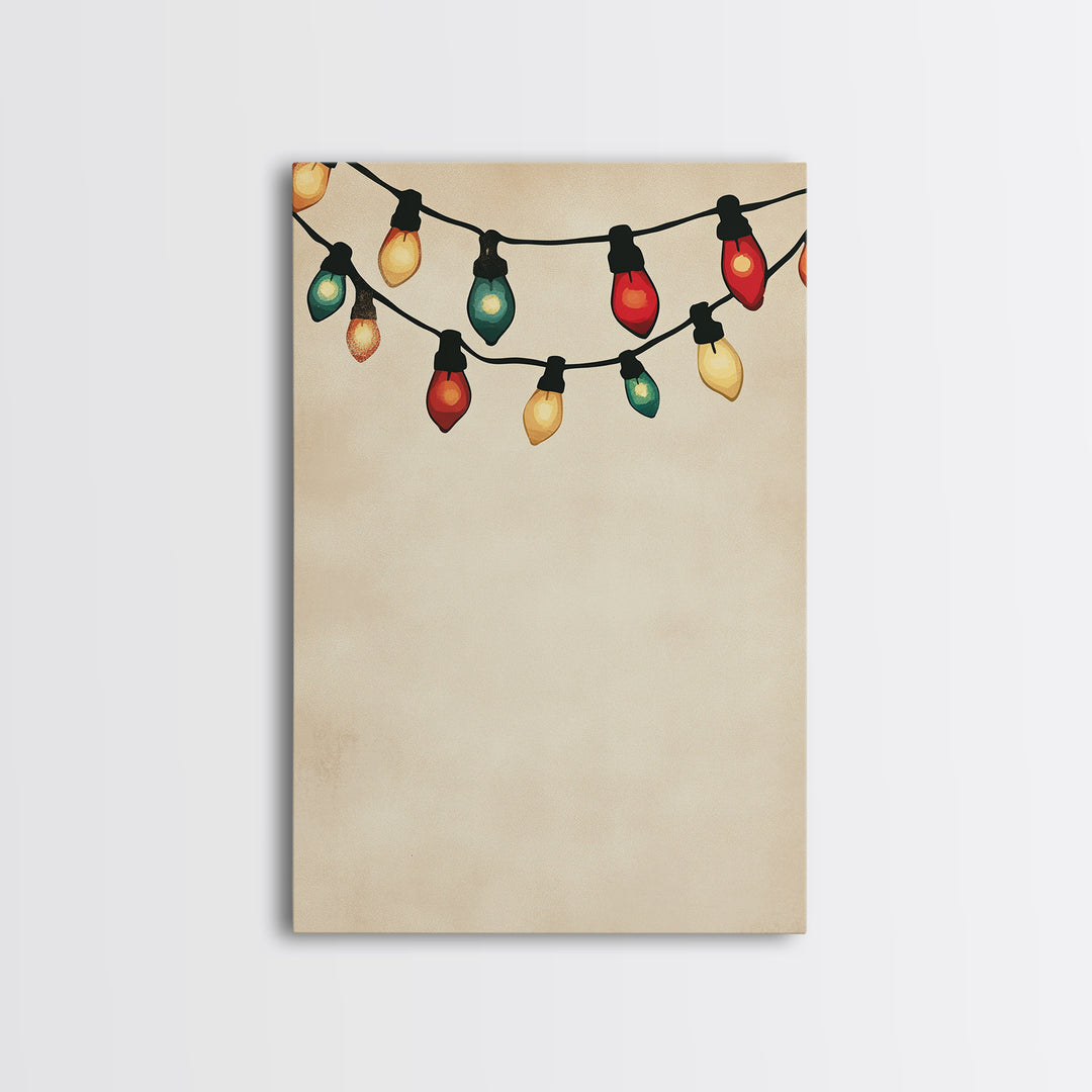 Drawing of Retro Christmas Lights Canvas Print - Framed Canvas - Minimalist Christmas Art - Boho Christmas Art - Rustic Christmas Art