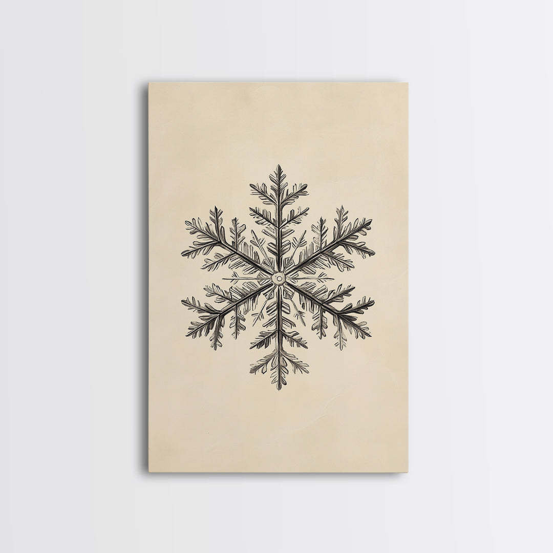 Drawing of a Snowflake Canvas Print - Framed Canvas - Minimalist Christmas Art - Boho Christmas Art - Rustic Christmas Art