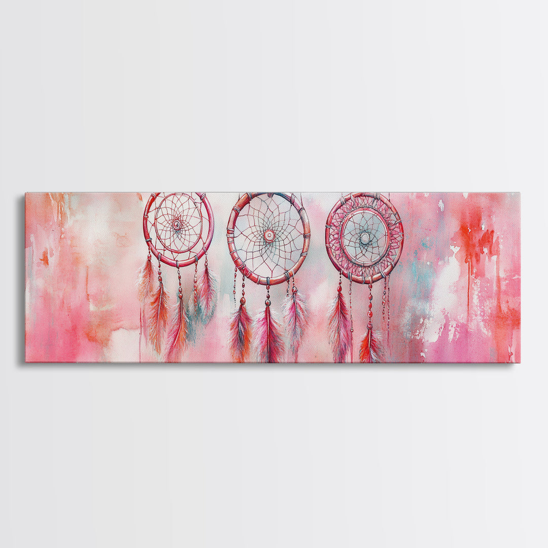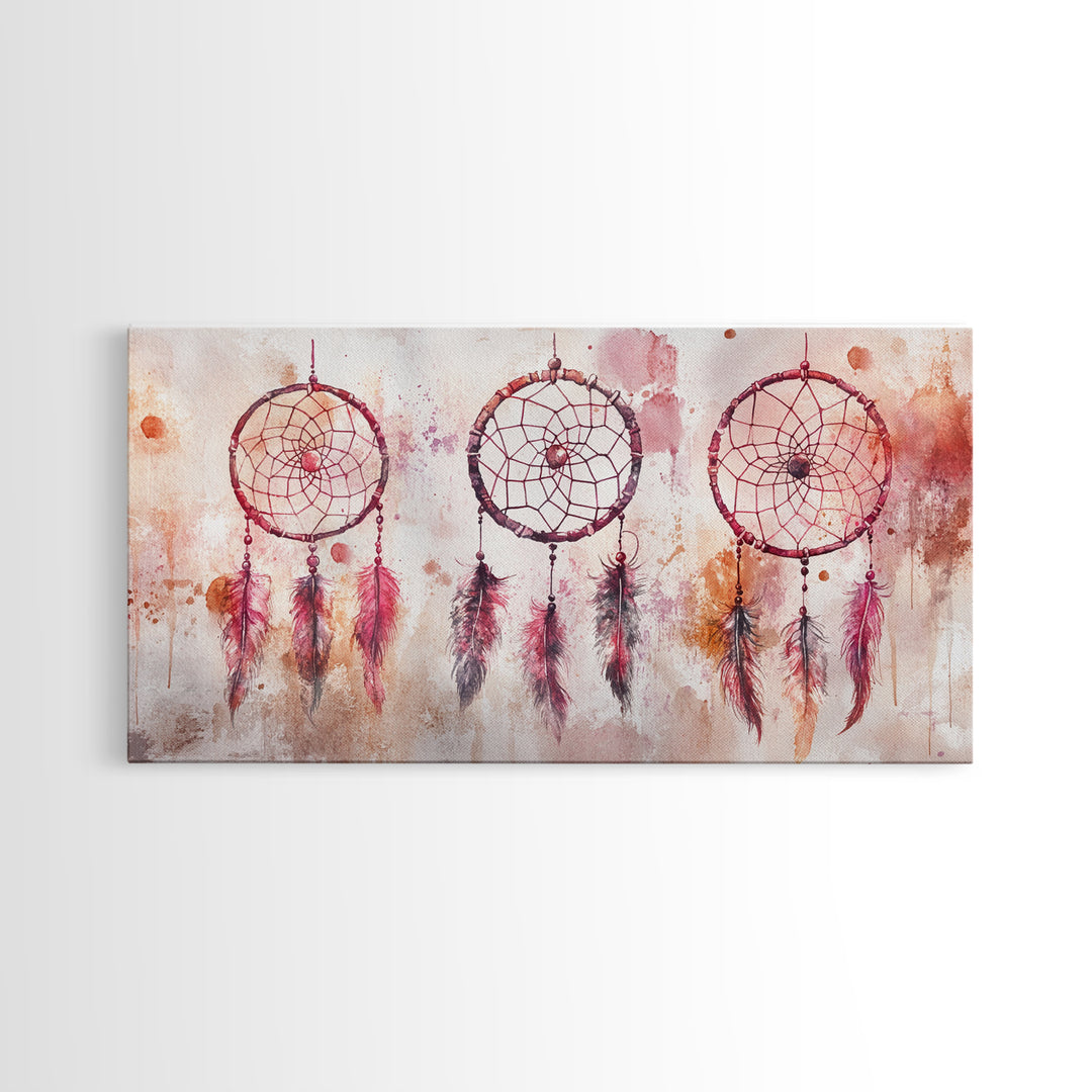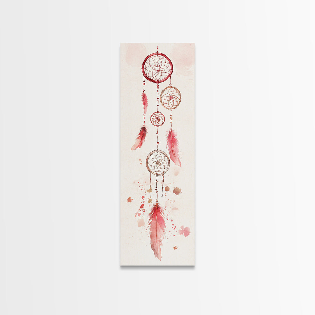 Dreamcatcher Canvas Print Rustic Pink Boho Bedroom Wall Art Cottagecore Skinny Framed Art Wabi Sabi Inspired Christmas Gift Idea