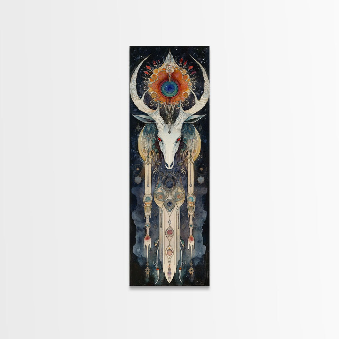 Dreamcatcher Deer Canvas Print Featuring Boho Sacred Geometry Art, Native Inspired Dark Angels Wall Art Ideal For Gift Idea