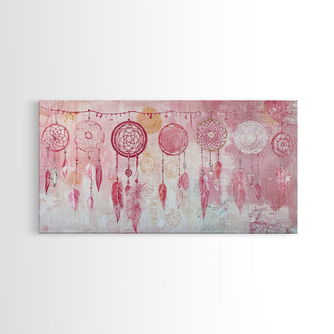 Dreamcatchers Painting in Pink Tones, Canvas Print, Whimsical Boho Art, Bedroom Aesthetic, Cozy Cottagecore Wall Art Style