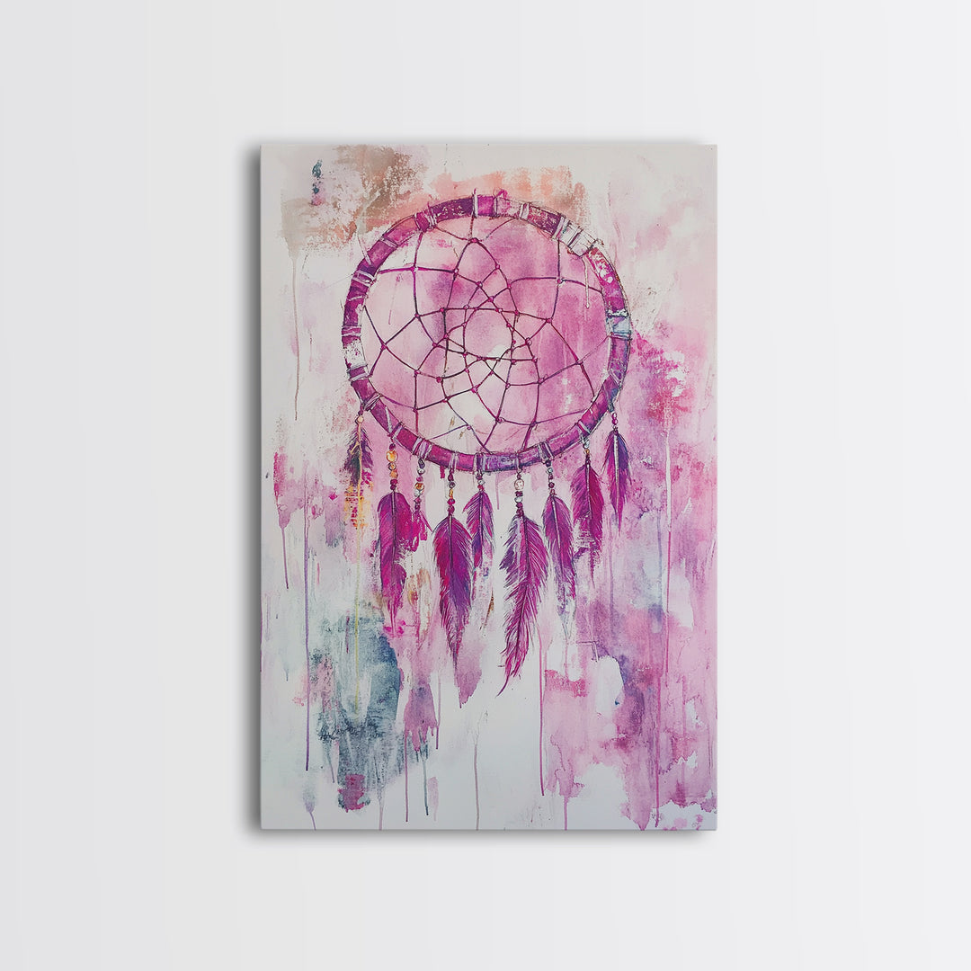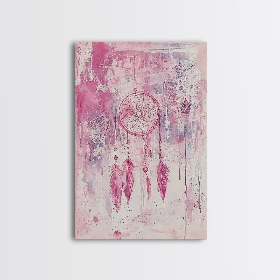 Dreamcatcher Watercolor Canvas Print Pink Abstract Wall Art Whimsical Bedroom Artwork Cottagecore Vertical Farmhouse Living Room Decor