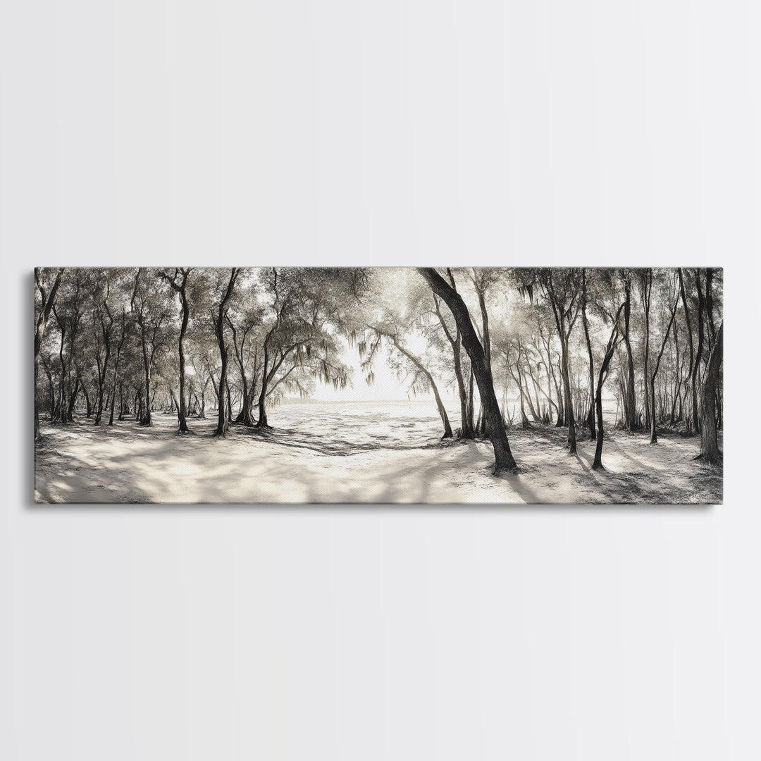 Dreamy Beach Forest, Sepia Trees, Canvas Print, Nature Wall Decor, Fall Bedroom Art, Rustic Woodland Landscape, Tree Shadow Light