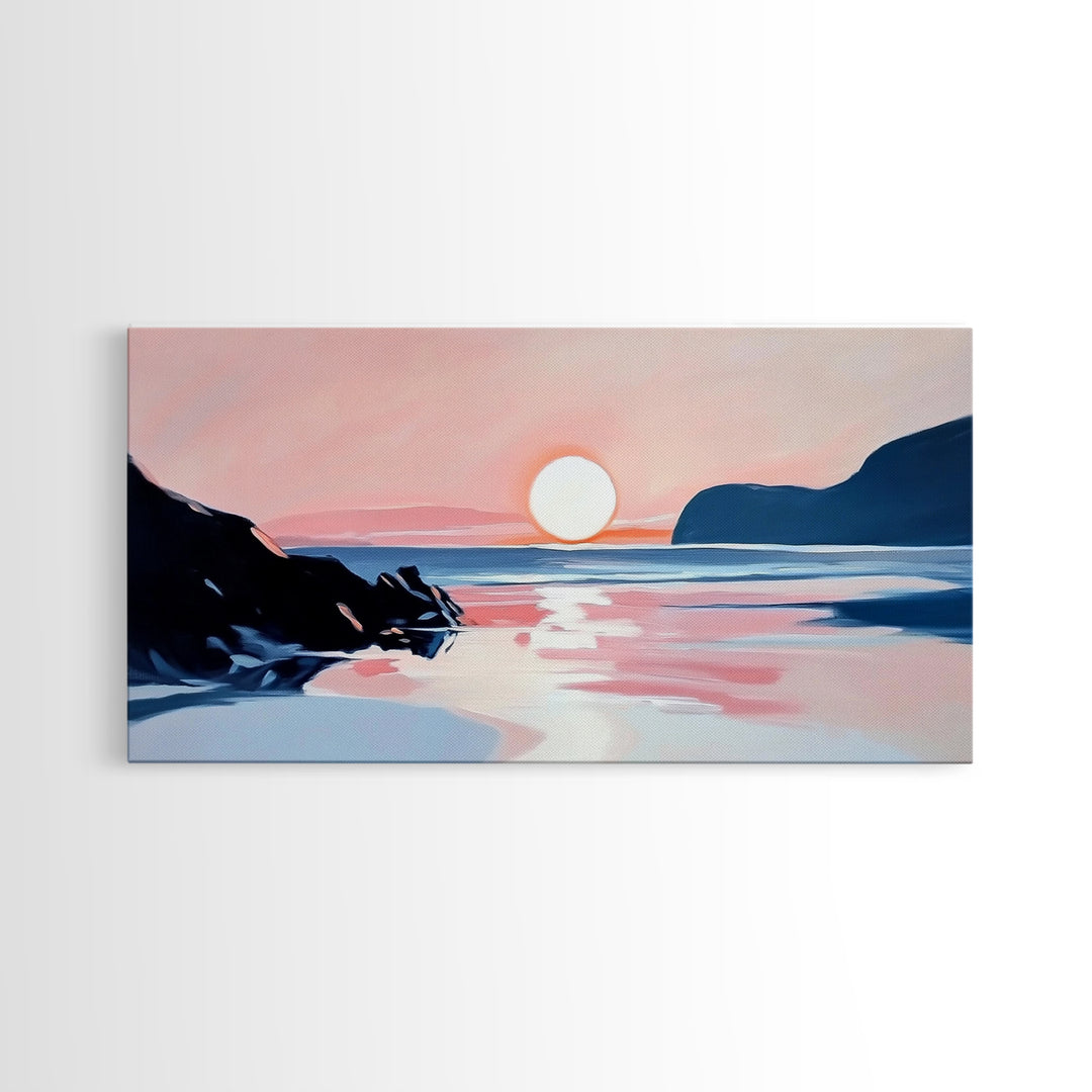 Dreamy Sunset, Coastal View, Framed Canvas Print, Serene Seascape, Beach House Decor, Modern Ocean Art, Calming Home Aesthetic