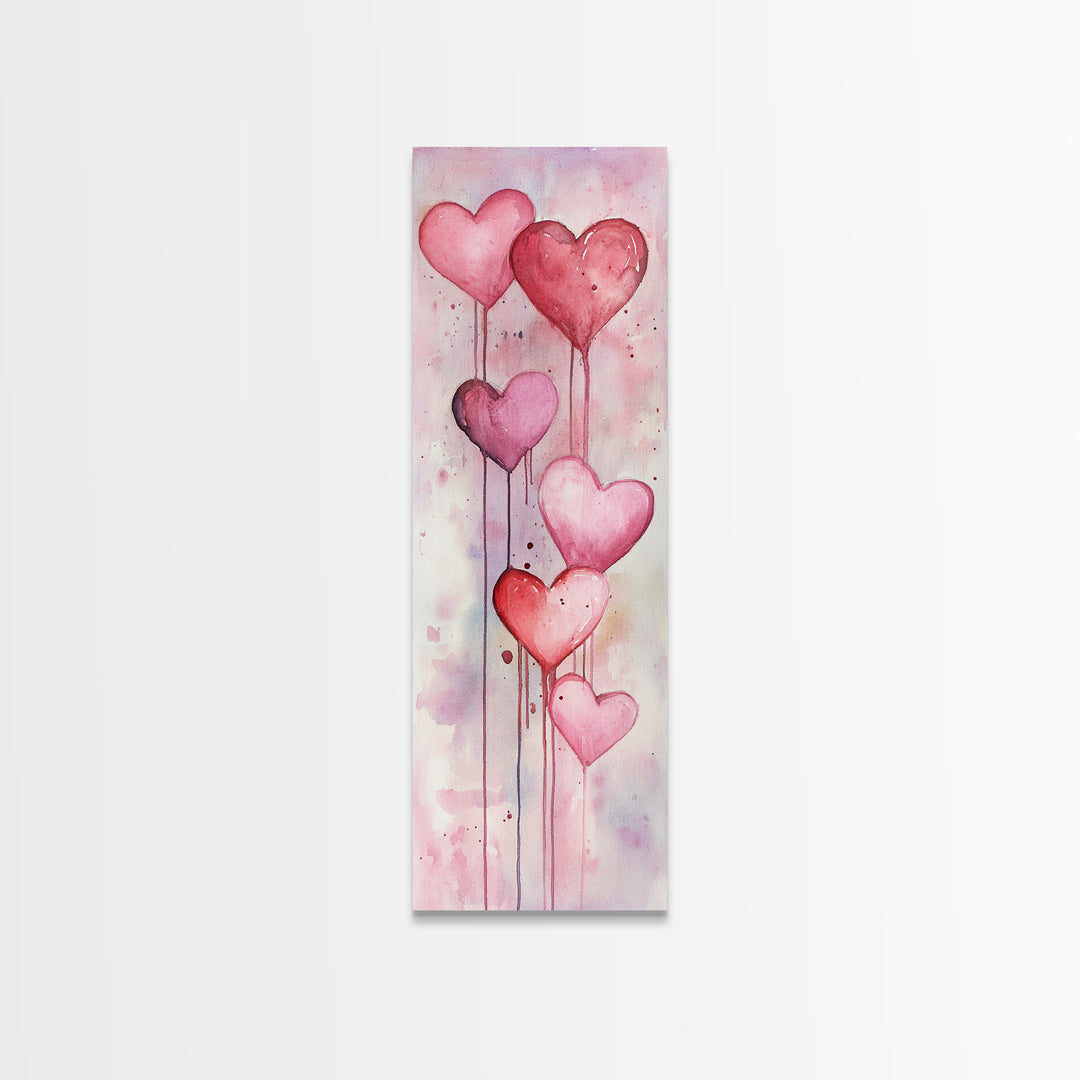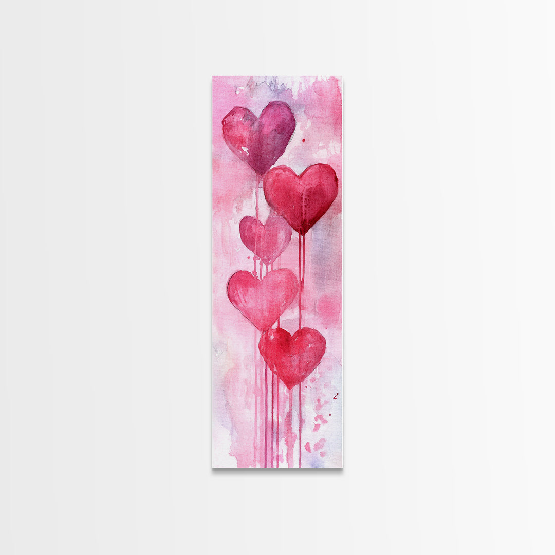 Dripping Heart Art Canvas Print, Moody Abstract Pink Wall Art, Romantic Living Room Art, Extra Vertical Skinny Tall Narrow Artwork