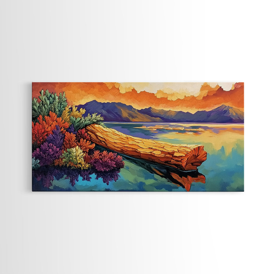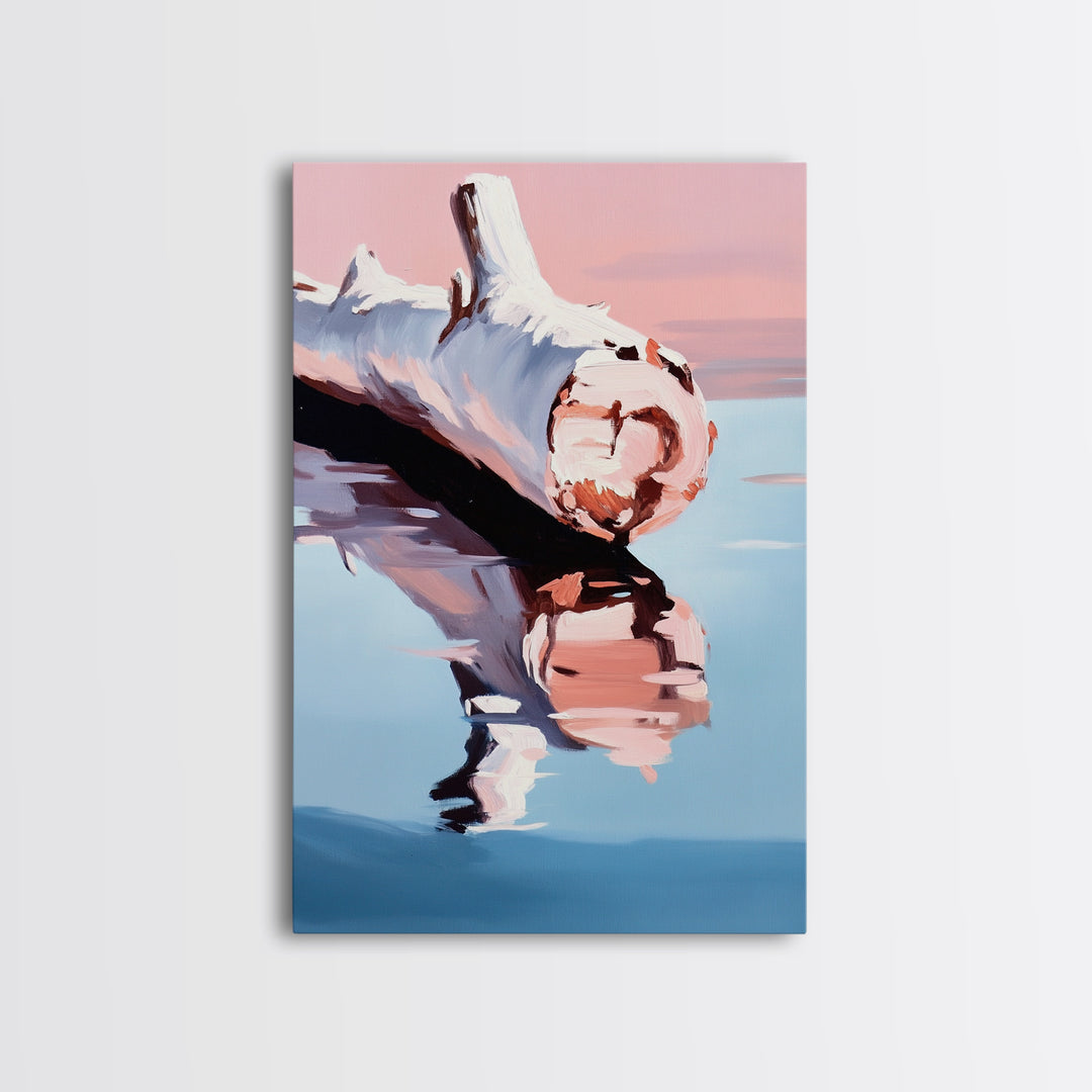 Driftwood, Lake Reflection, Nature Wall Art, Rustic Cabin Decor, Framed Canvas Print, Minimalist Landscape, Living Room Wall Art