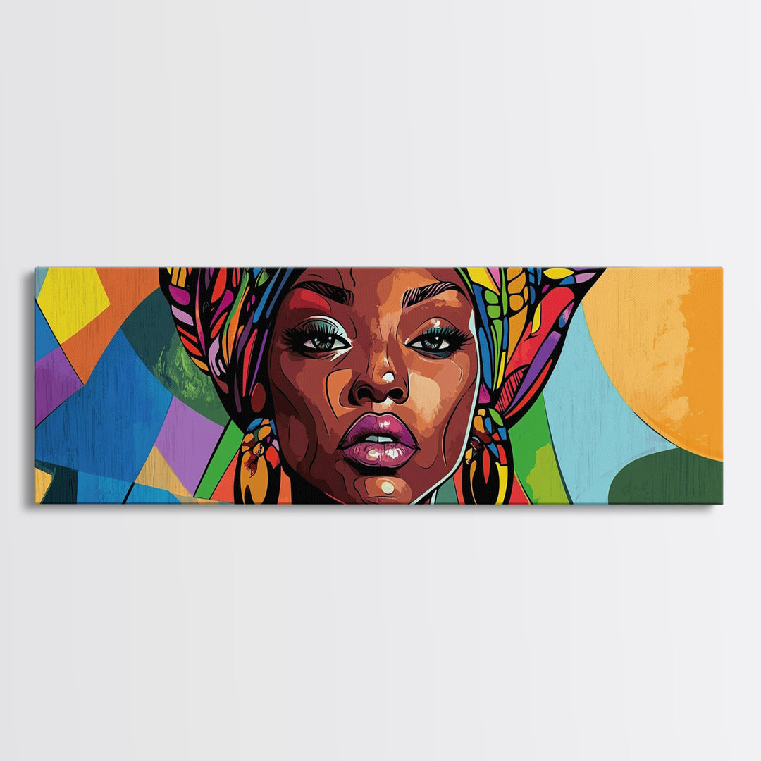 Afrocentric Portrait Canvas Print African Art Goddess Wall Art Bold Colors Vibrant Bedroom Decor Original Art Gift Idea Unique