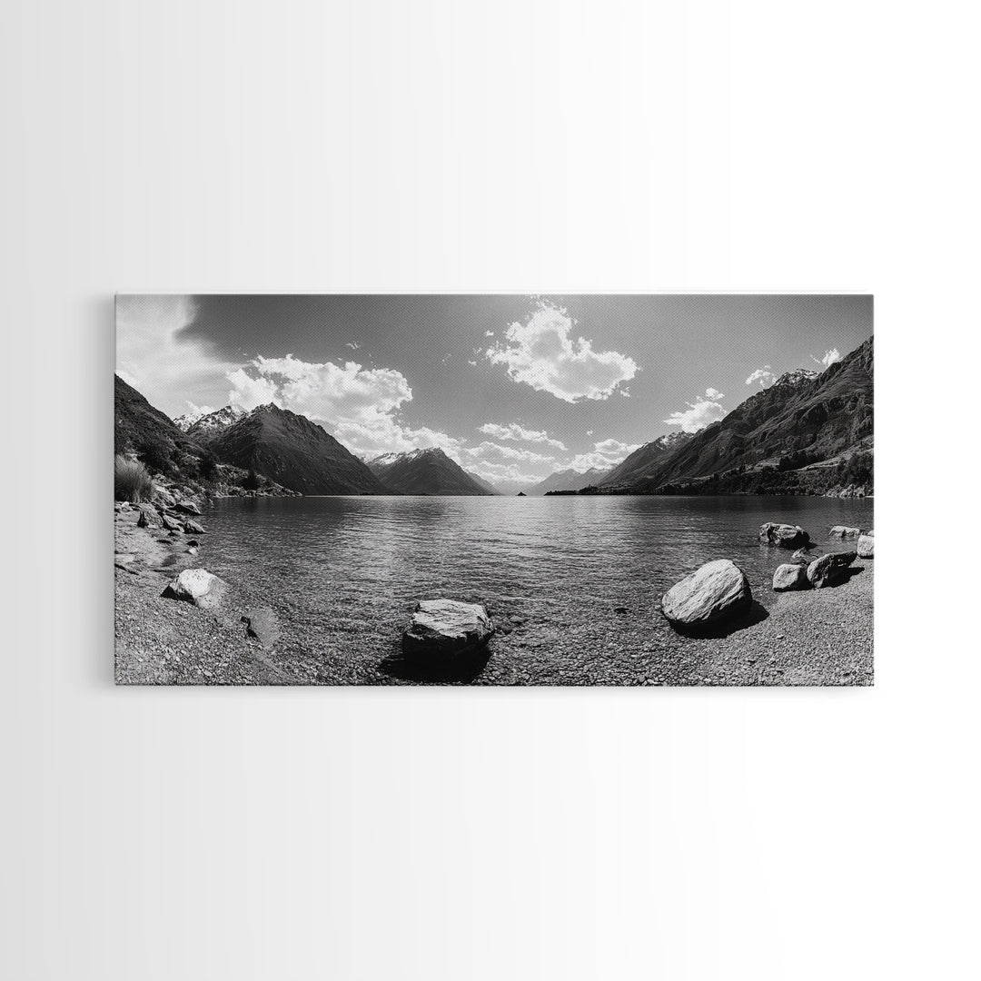 Alpine Lake Print, Mountain Reflection Art, Nature Photography, Black and White Canvas Print, Minimalist Living Room, Cabin Wall Decor