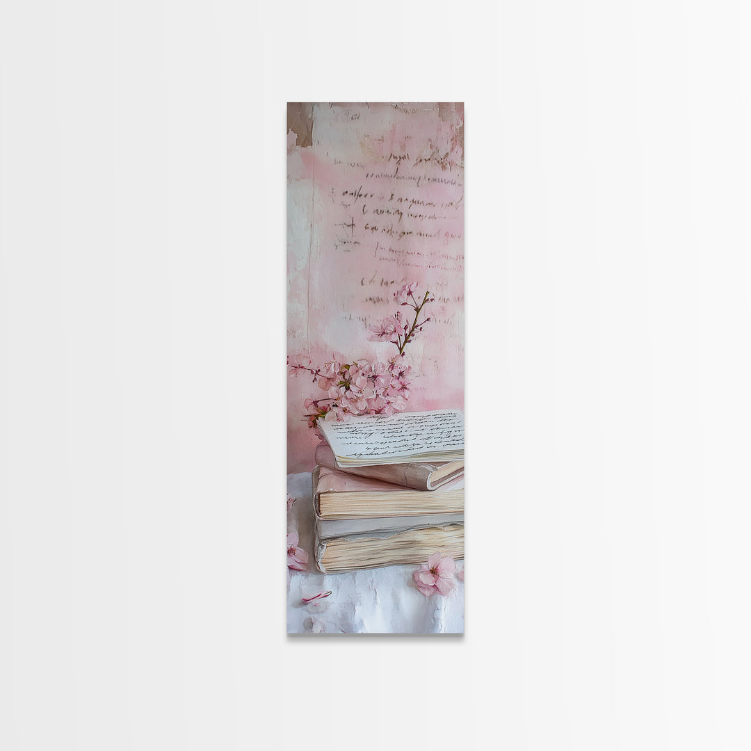 Antique Book Painting Framed Canvas Print with Pink Cherry Blossom Wall Art Perfect for Cottagecore Home Decor Vintage Aesthetic Room