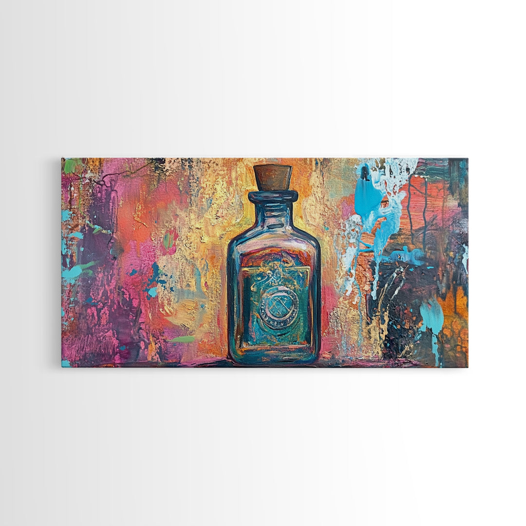 Antique Bottle Art, rustic decor, vintage wall art, moody art, blotter art, bold abstract painting, colorful painting, canvas print